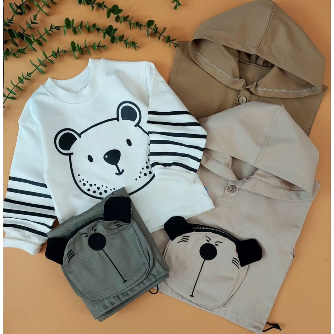 لباس راحتی بچگانهست پاییزه بچگانهست جذاب تابستانهبادی آستین بلندهودی شلوار بچگانهست سه تیکه بچگانه